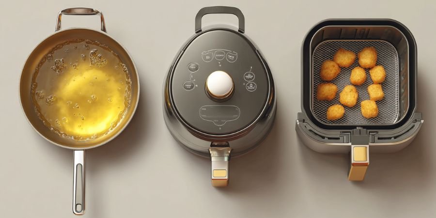 Como puedes ver, la freidora de aire ofrece una forma más limpia, rápida y saludable de conseguir el mismo resultado que una fritura tradicional, pero sin exceso de grasa ni olores.