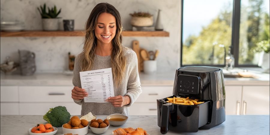 Esta tabla de cocción freidora de aire es perfecta para tus recetas del día a día y para ganar confianza si todavía estás aprendiendo a usar tu air fryer.