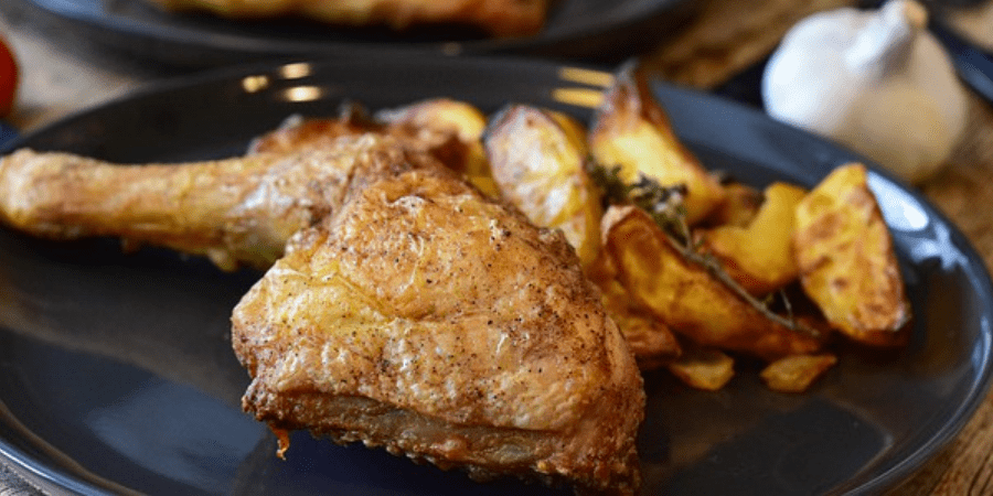 Muslos de pollo frito en freidora sin aceite