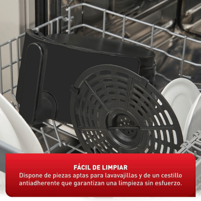 - Fácil de limpiar: La freidora cuenta con piezas extraíbles aptas para lavavajillas, lo que simplifica la limpieza después de su uso.
